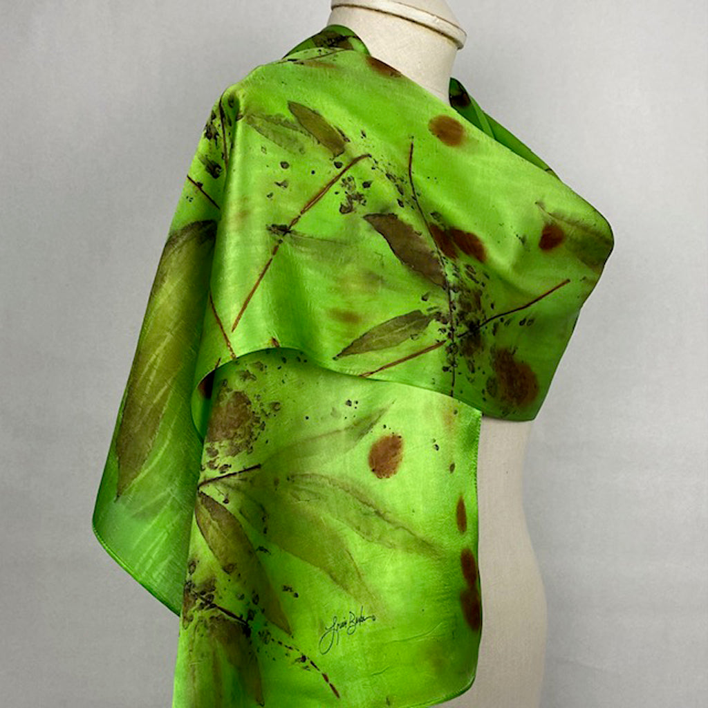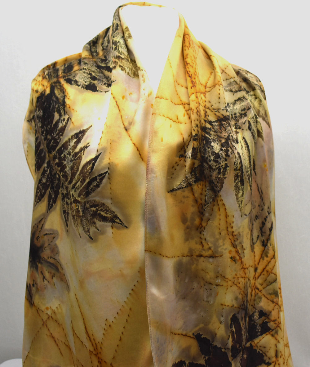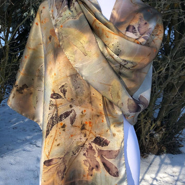 14" x 72" Eco Printed Silk Satin Scarf