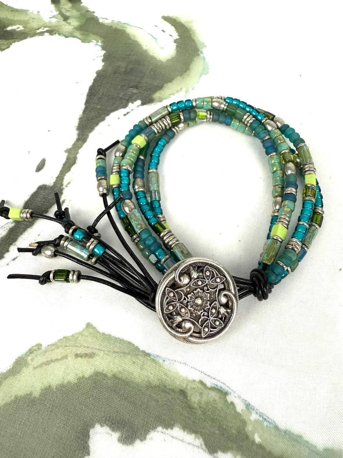 Aqua Bead Leather Bracelet