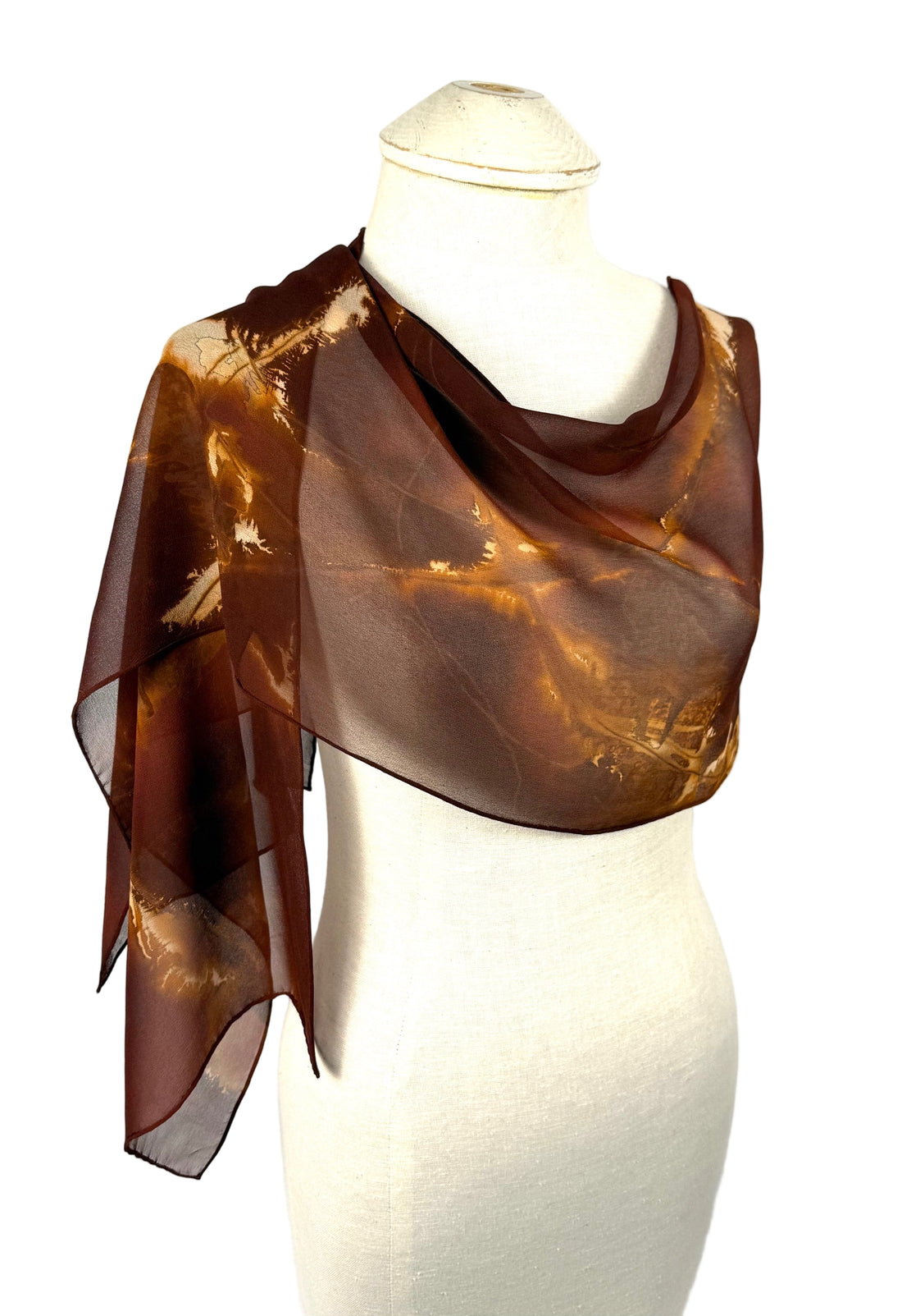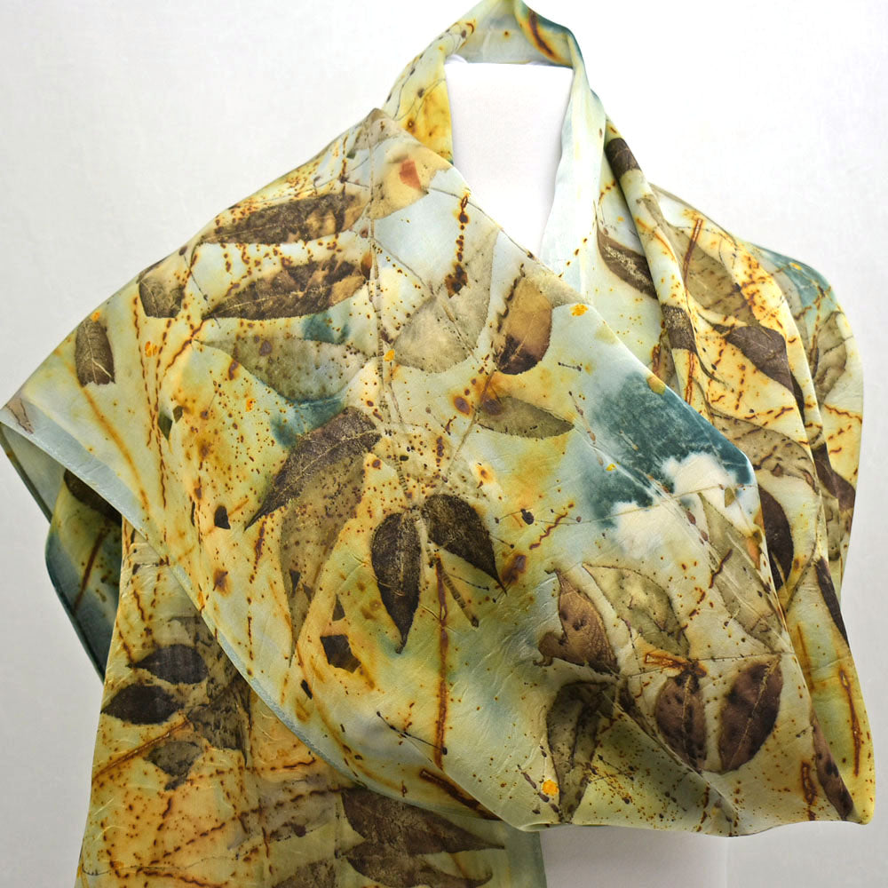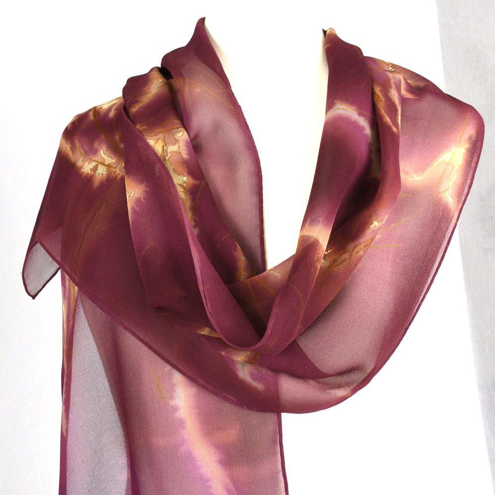 14" x 68" Eco Printed Silk Chiffon Scarf