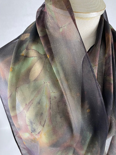 14 x 72 hand dyed eco printed silk chiffon scarf